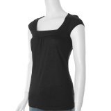 - Fashion top features capped short sleeves and soft, comfortable fabric